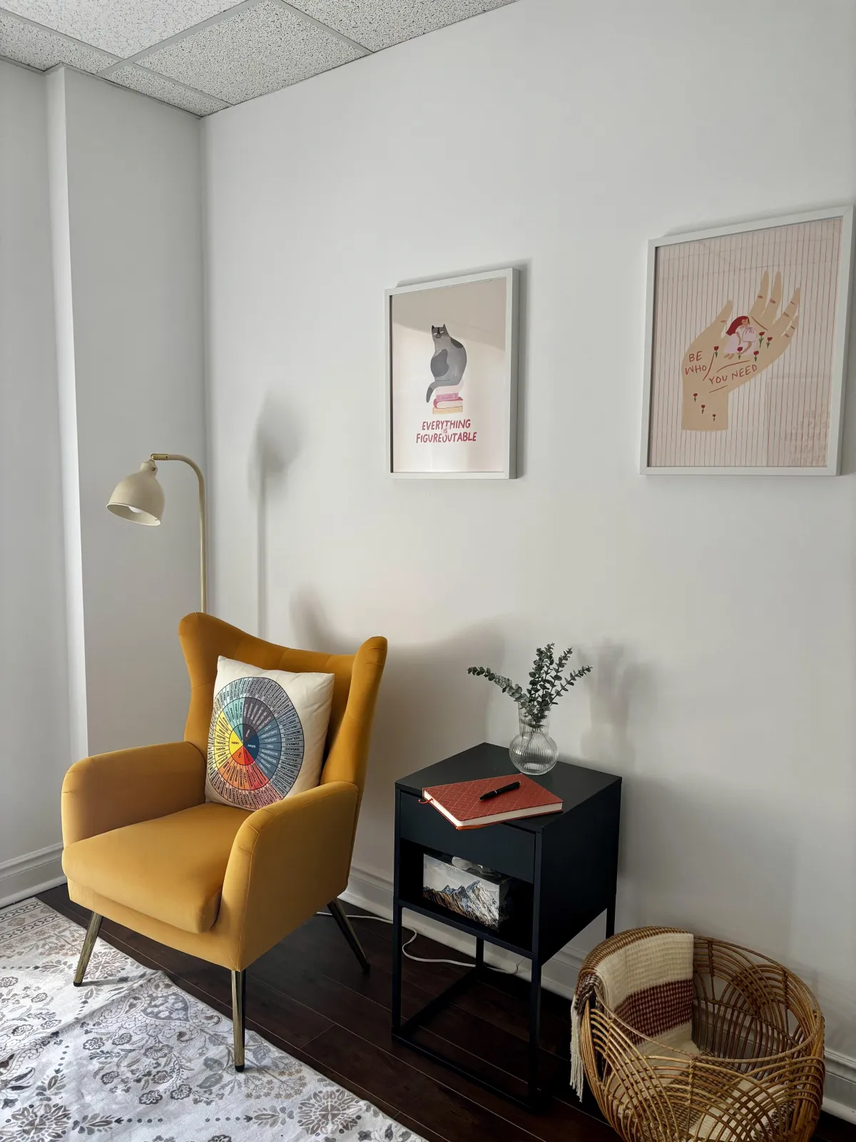 When you arrive, you’ll find a peaceful waiting area, warm lighting, and soft touches that make it easy to settle in. Sessions are private and confidential — this is your time to pause, reflect, and work toward the changes you want to see.